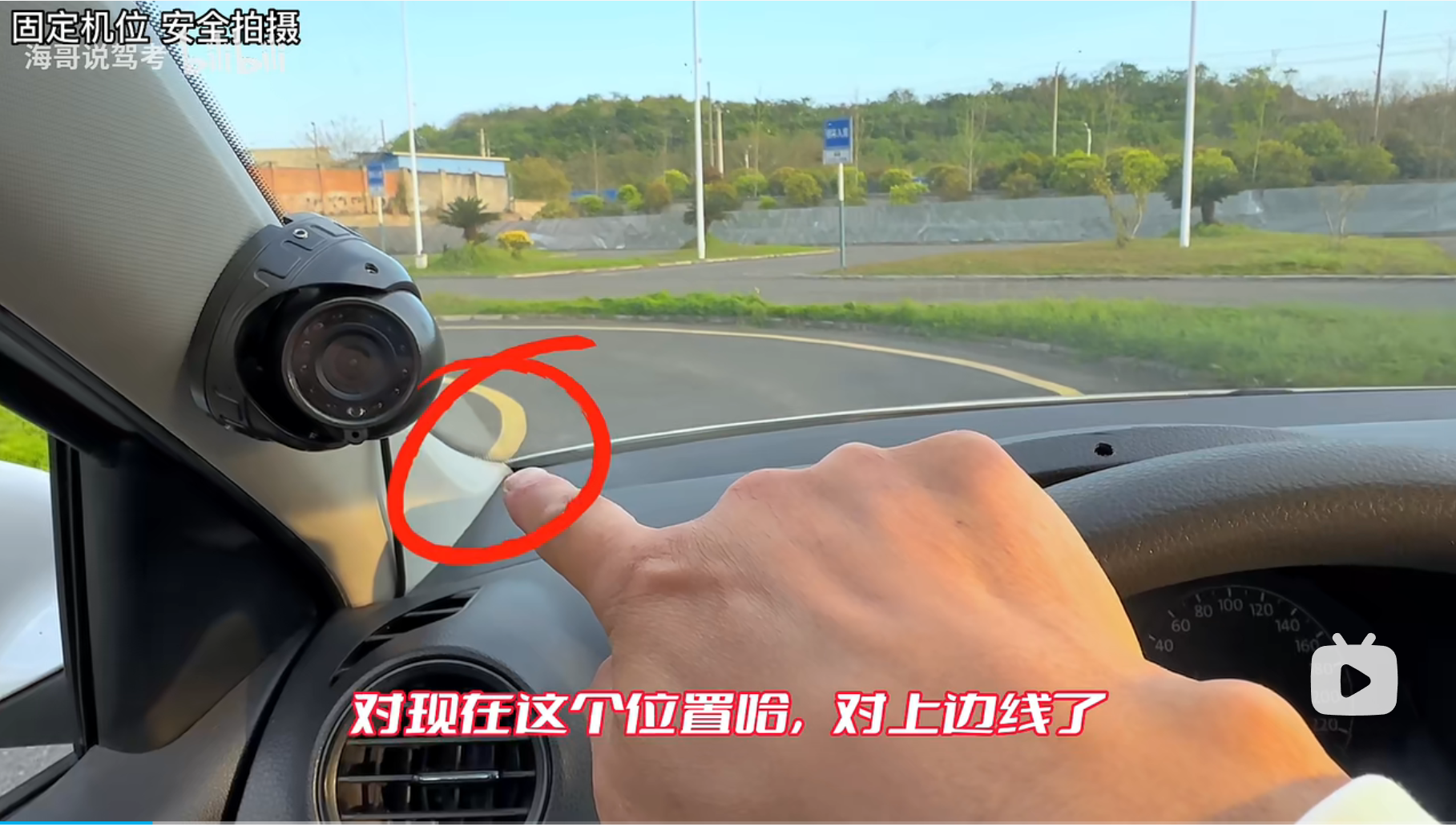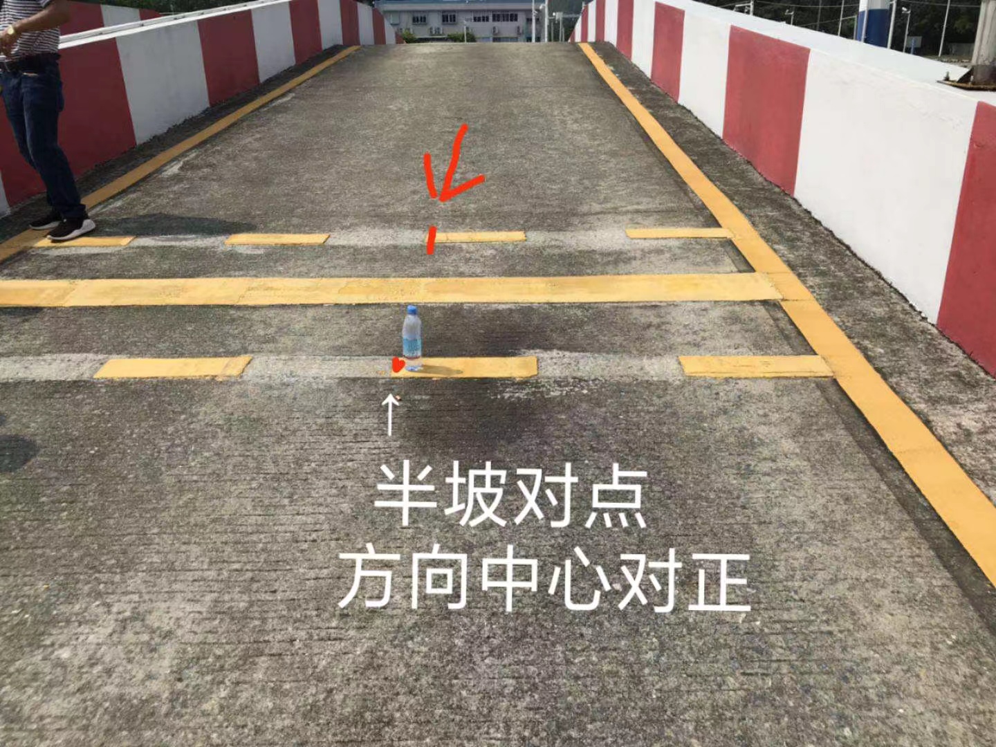 练习场地特有的点位,以一块砖头标识。实际考场与此略有不同!等待教练通知确认。