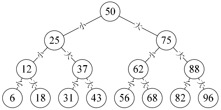- 最上面一层的节点(即例图中的节点50)为根节点;