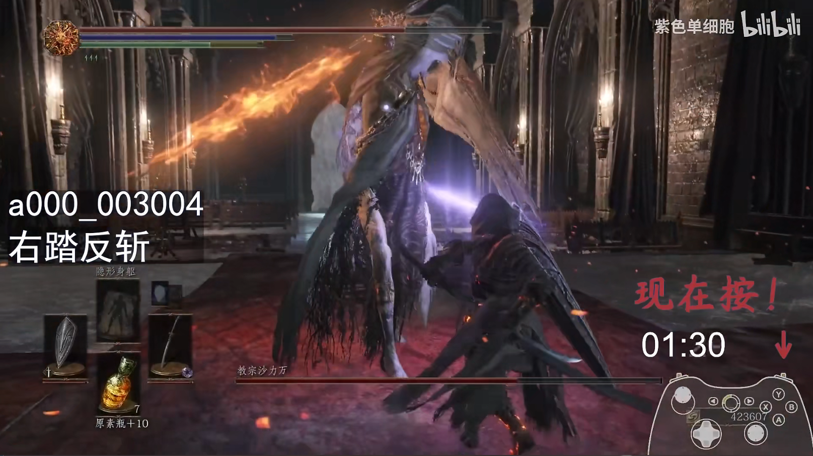 我觉得这样的学习方式太愚蠢了,必然会浪费大量的无用时间。我想,有没有mod可以做到角色无敌,让我可以和boss一直对练。我尝试去找了,找的过程中发现这种mod不多!真是让人震惊!而且mod的安装有安全问题和学习成本,最后我放弃这个道路。接着,我去看别人的针对沙立万的弹反教程,【黑暗之魂3】沙力万全招式弹反分解。对于这个视频我的感受是:它的有效信息确实多,但感觉不像个教程!